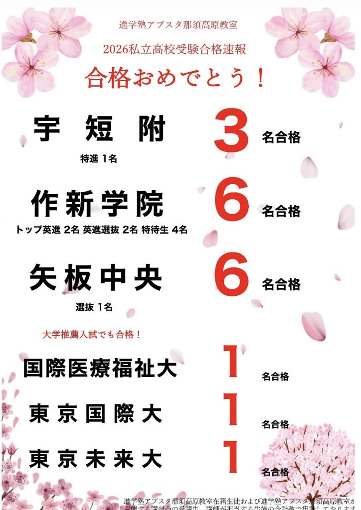 合格高校:那須清峰高等学校〇〇科