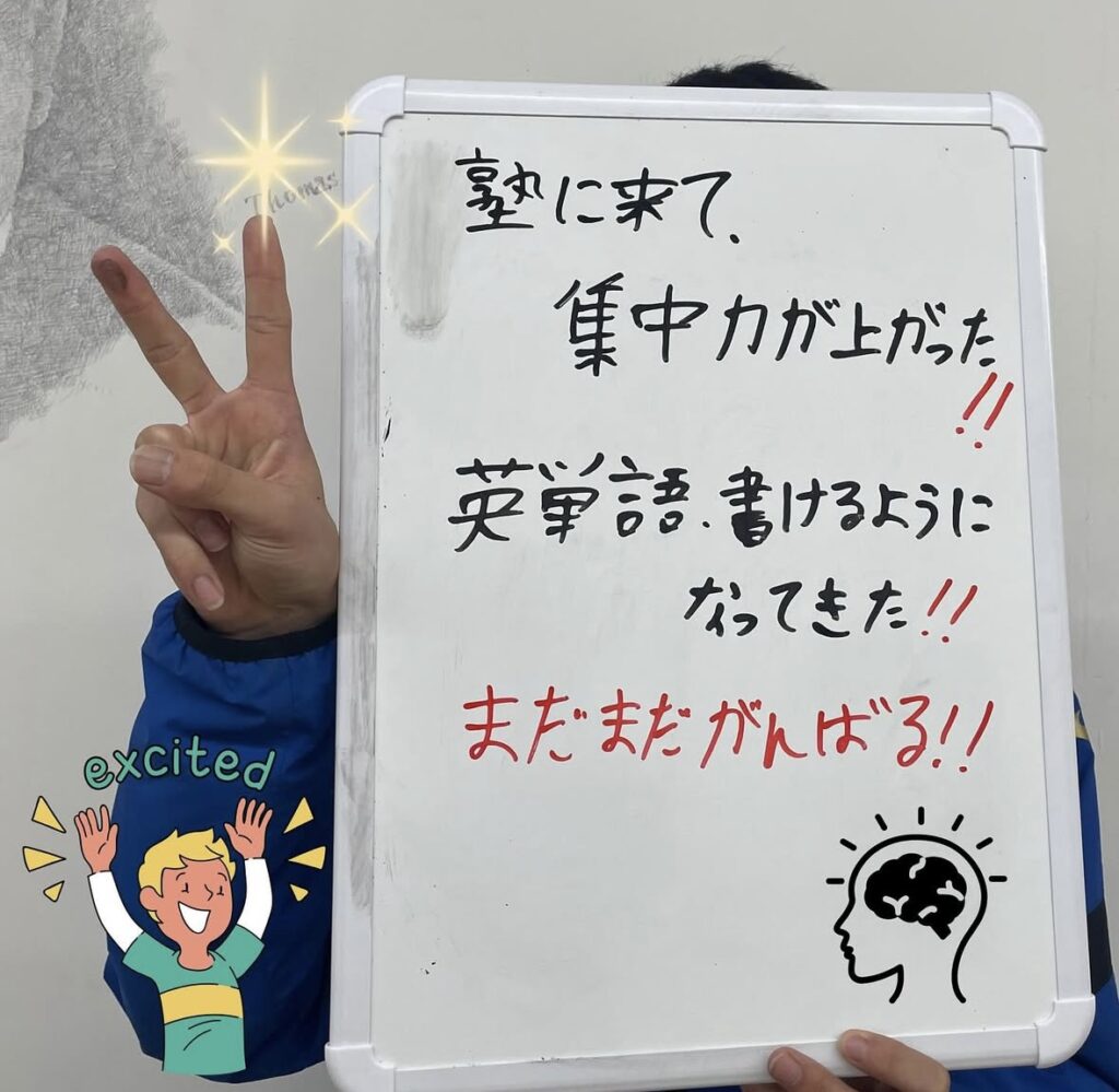 この塾では、わからないところを一つずつ丁寧に教えてもらえるので、少しずつ理解できるようになりました。