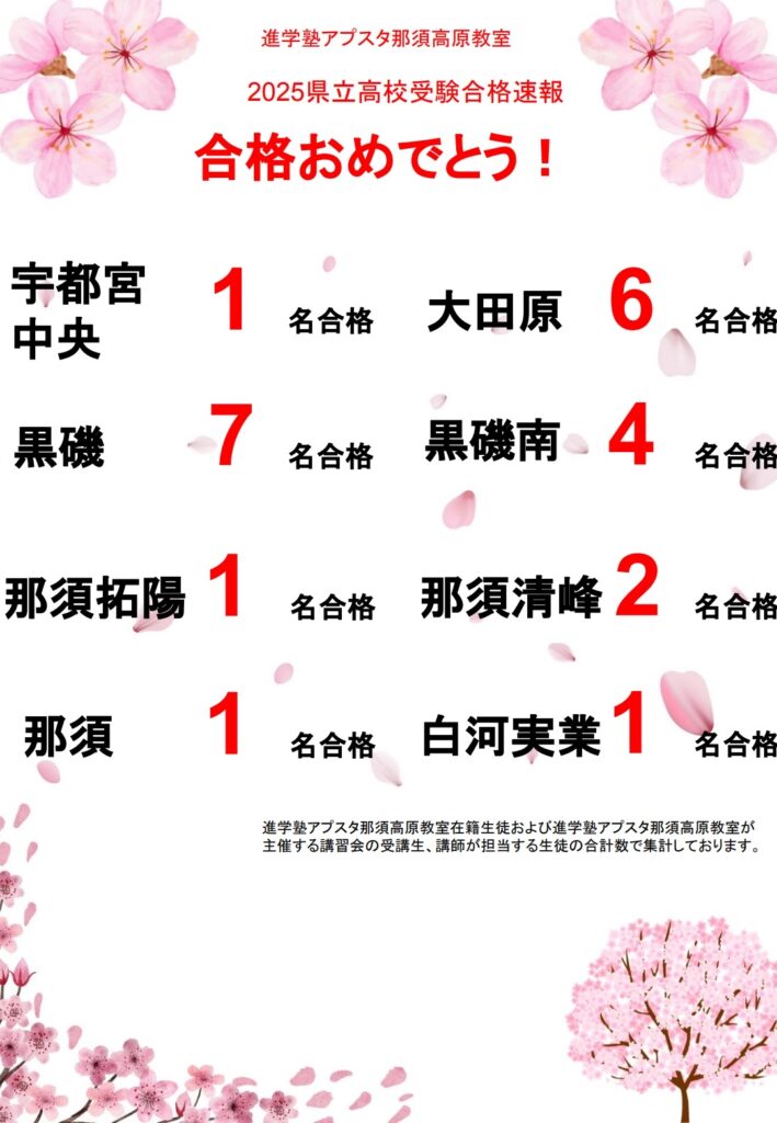 合格高校:栃木県立大田原高等学校